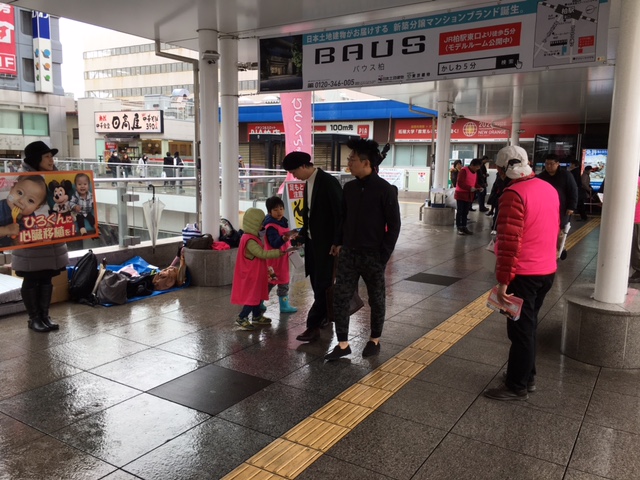 第11回街頭募金活動を柏駅東口にて無事に行うことができました。雨が降る中、祈る気持ちで現地へ向かい準備を始めると、なんと!雨が止み、広範囲での募金活動が可能となりました。時間が経つにつれ晴れ間も見え始め、募金を呼びかける声も自然と大きくなるのを感じました。募金してくださった多くの皆さま、街頭募金活動に参加してくださったボランティアの皆さまありがとうございました。