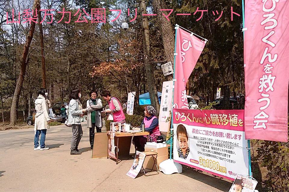 いつも山梨での活動を支えてくださっている方のご尽力で、第一回目の万力公園フリーマーケットの会場にて街頭募金活動を実施させていただくことができました。当日は主催者さまのご配慮により公園中央部分の交差点で実施させていただき、多くの方にひろくんのことを知っていただくことができました。ご協力いただきましたお一人おひとりに心より感謝申し上げます。