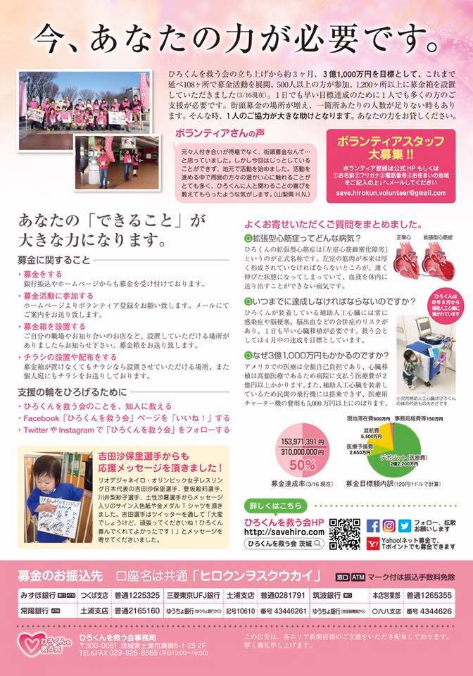 先週は新たな試みとして、地元土浦市の新聞の折り込み広告の中にひろくんの情報紙を入れていただきました。