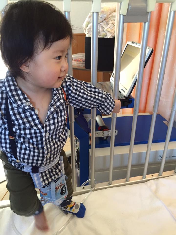 少しずつ歩けるようになってベッドの上で動き回るひろですが、先日ちょっとしたことから後ろに転倒し頭をぶつけてしまいました。
