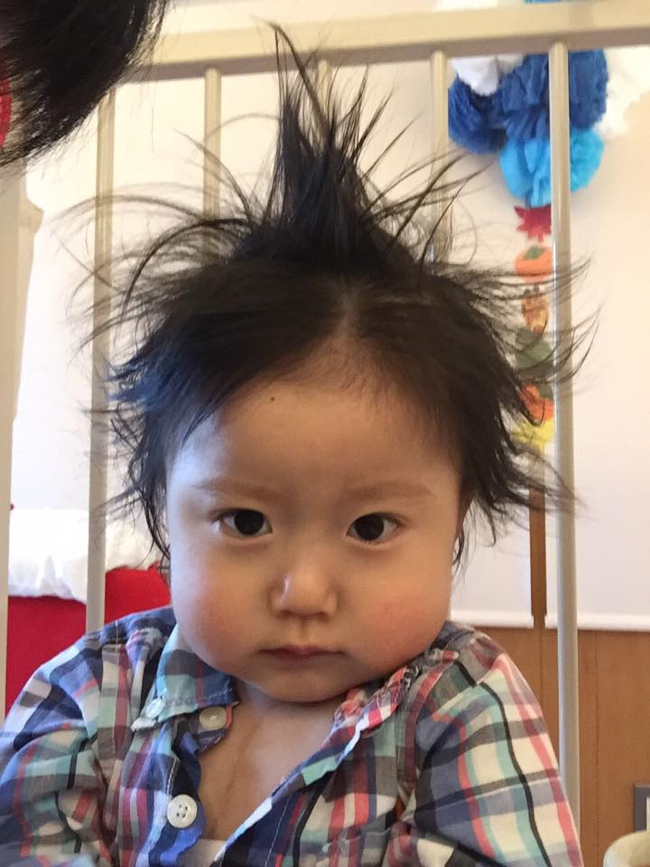 さて、ひろですが、お昼寝から目覚めたらこんな髪型になってました。